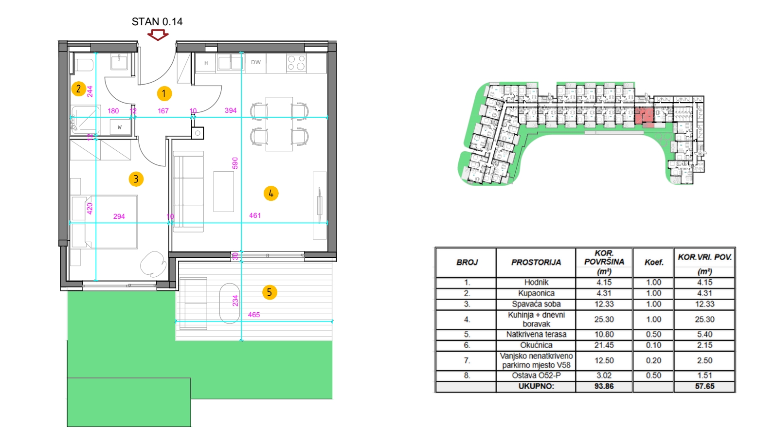 Stanu pripada parkirno vanjsko mjesto od 12,50 m2 i ostava.