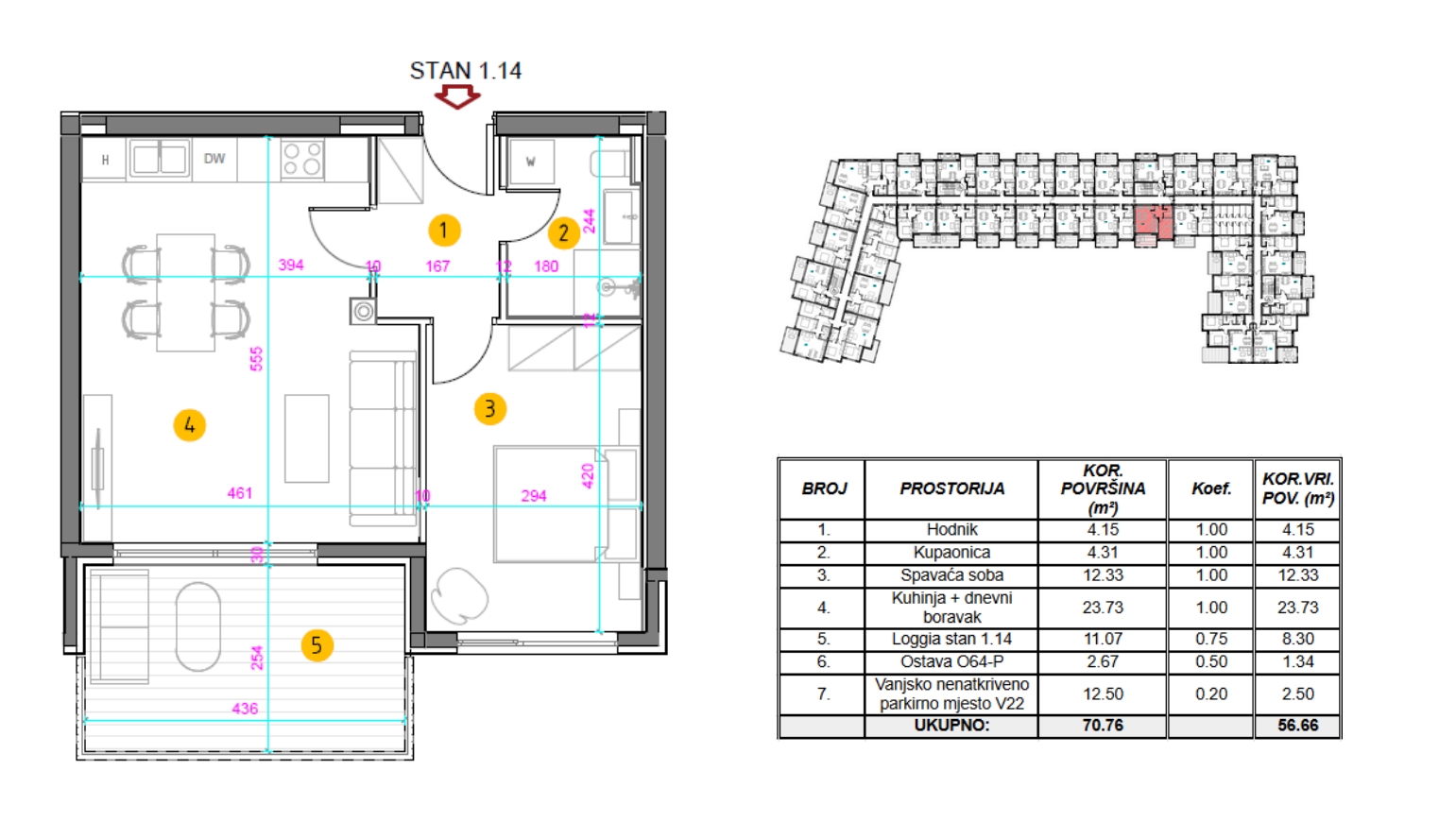 Stanu pripada parkirno mjesto od 12 m2 i ostava.