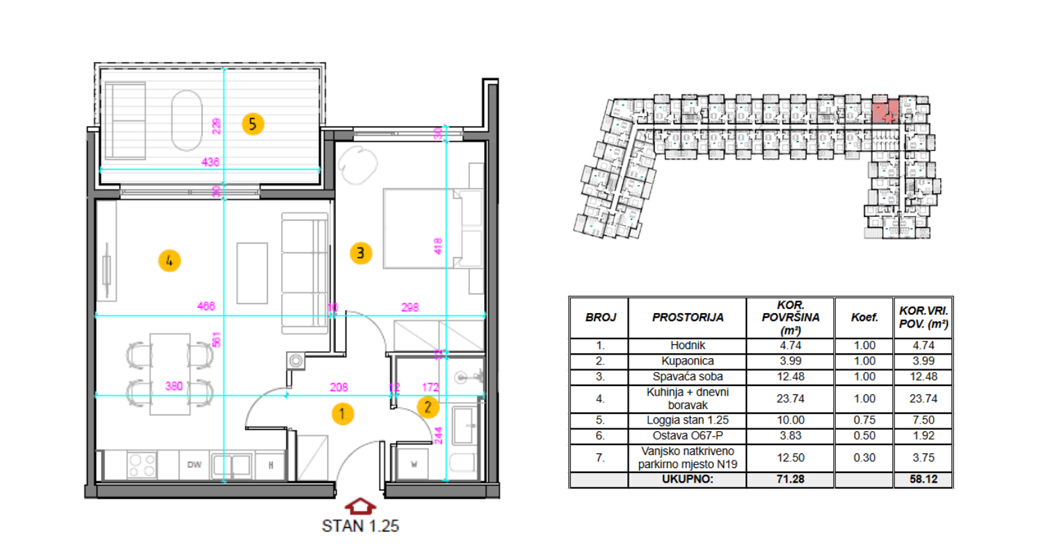 Stanu pripada parkirno mjesto od 12.50 m2 i ostava.