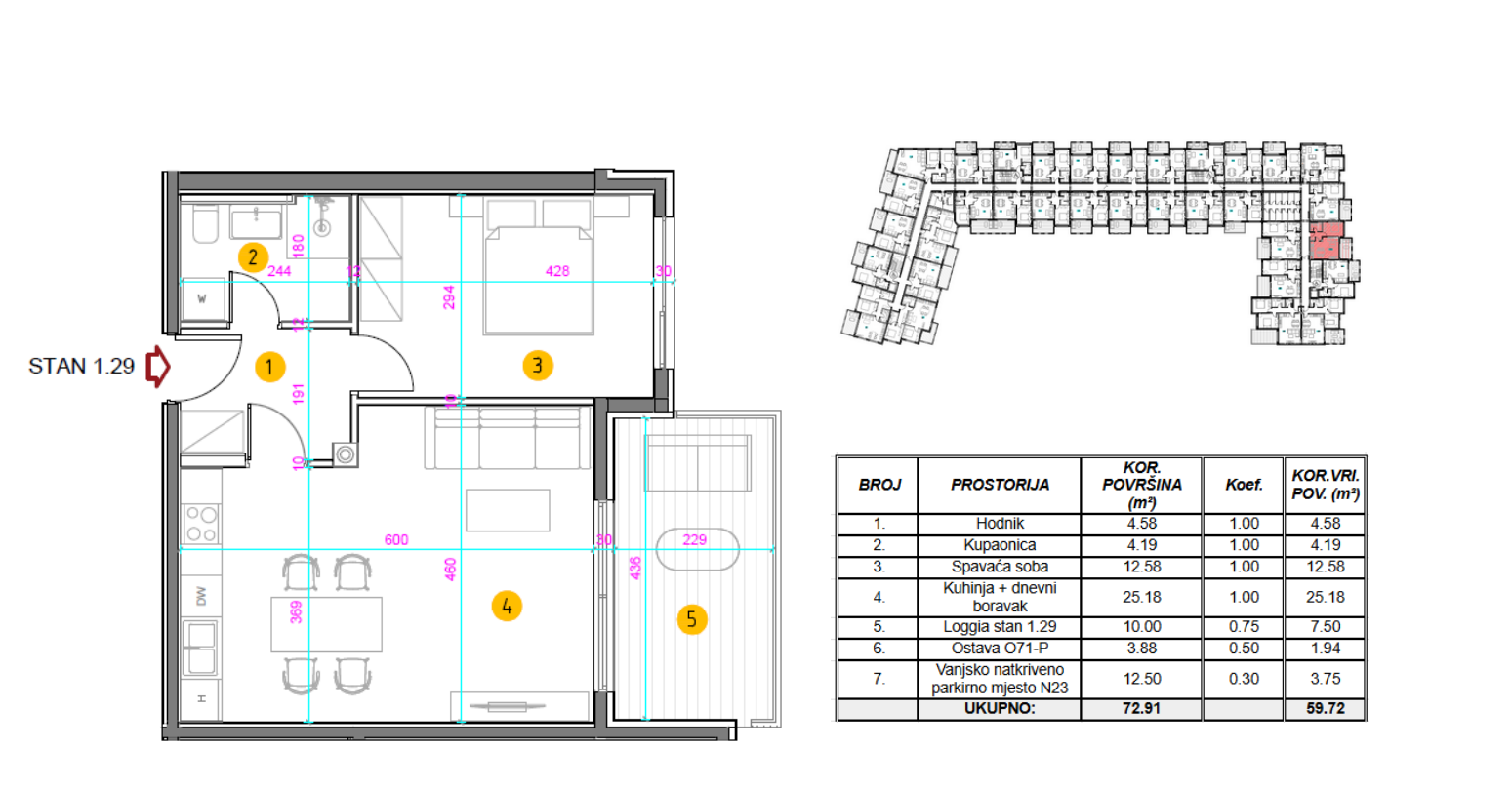 Stanu pripada vanjsko parkirno mjesto od 12.50 m2 i ostava.