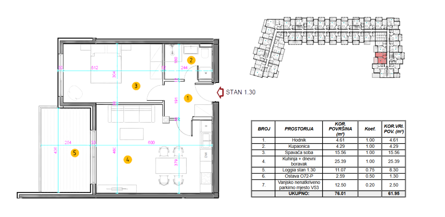 Stanu pripada parkirno mjesto od 12.50 m2 i ostava.