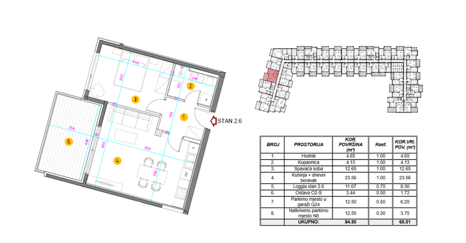Jednosobni stan površine 65,01 m² nalazi se na 2.katu luksuzne stambene zgrade Centurion Residences u Umagu.