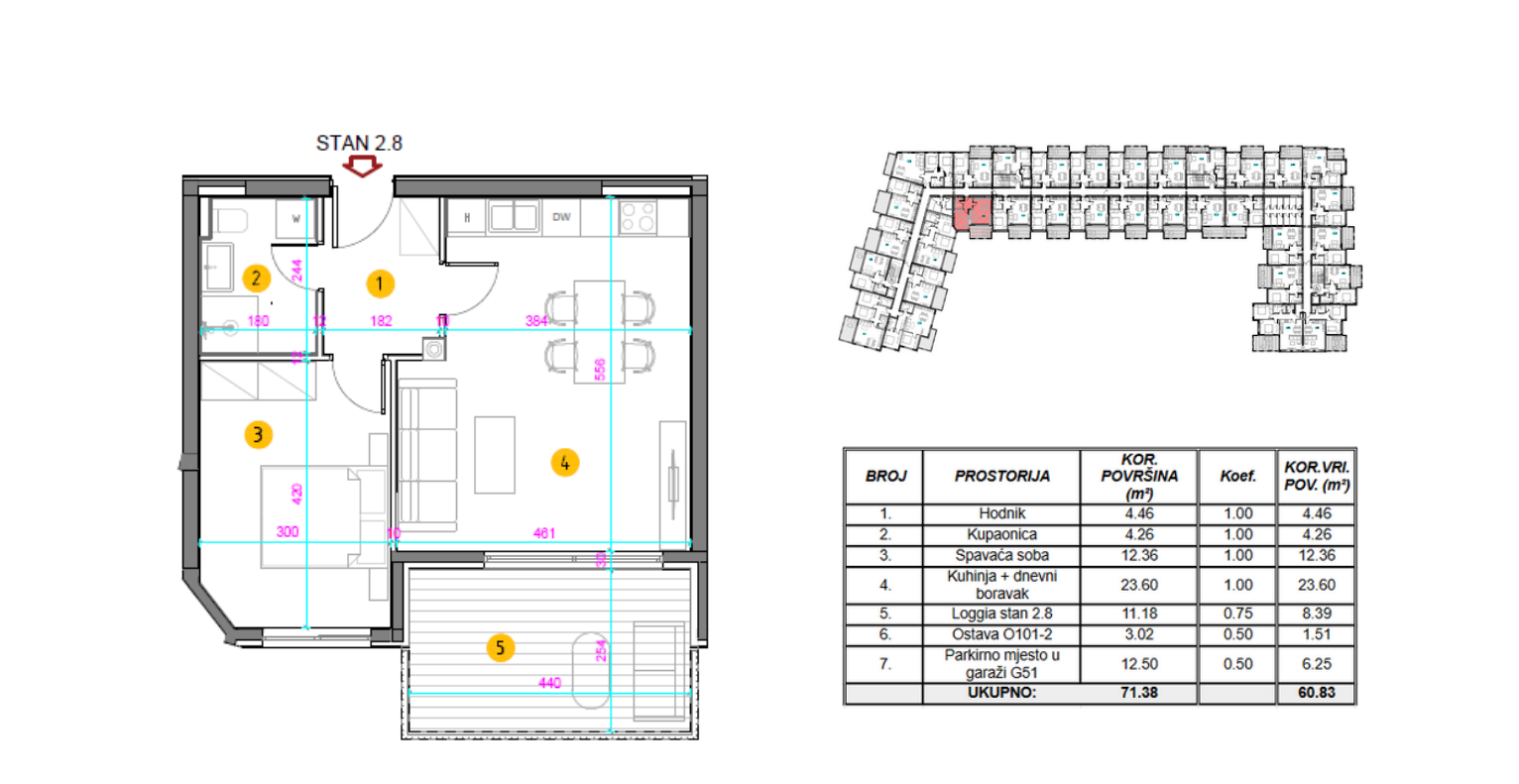 Jednosoban stan površine 60,83 m² nalazi se na 2. katu luksuzne stambene zgrade Centurion Residences u Umagu.