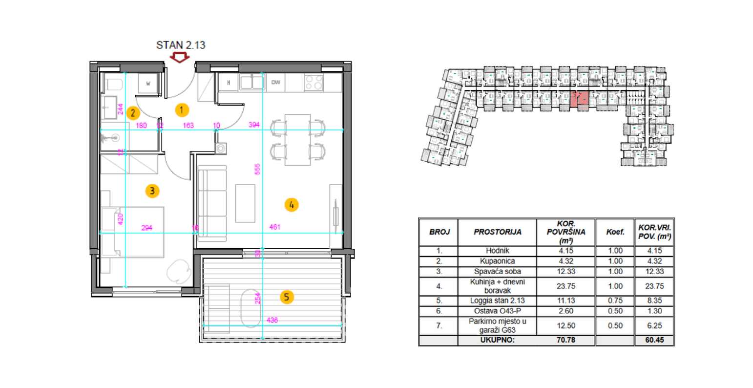 Jednosoban stan površine 60,45 m² nalazi se na 2. katu luksuzne stambene zgrade Centurion Residences u Umagu.