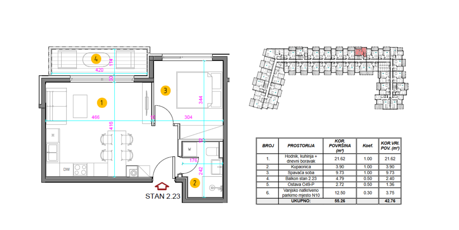 Stanu pripada parkirno mjesto od 12.50 m2 i ostava.
