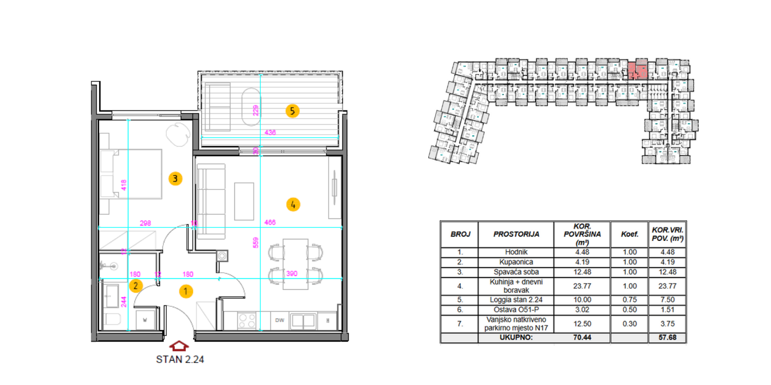 Stanu pripada parkirno mjesto od 12.50 m2 i ostava.