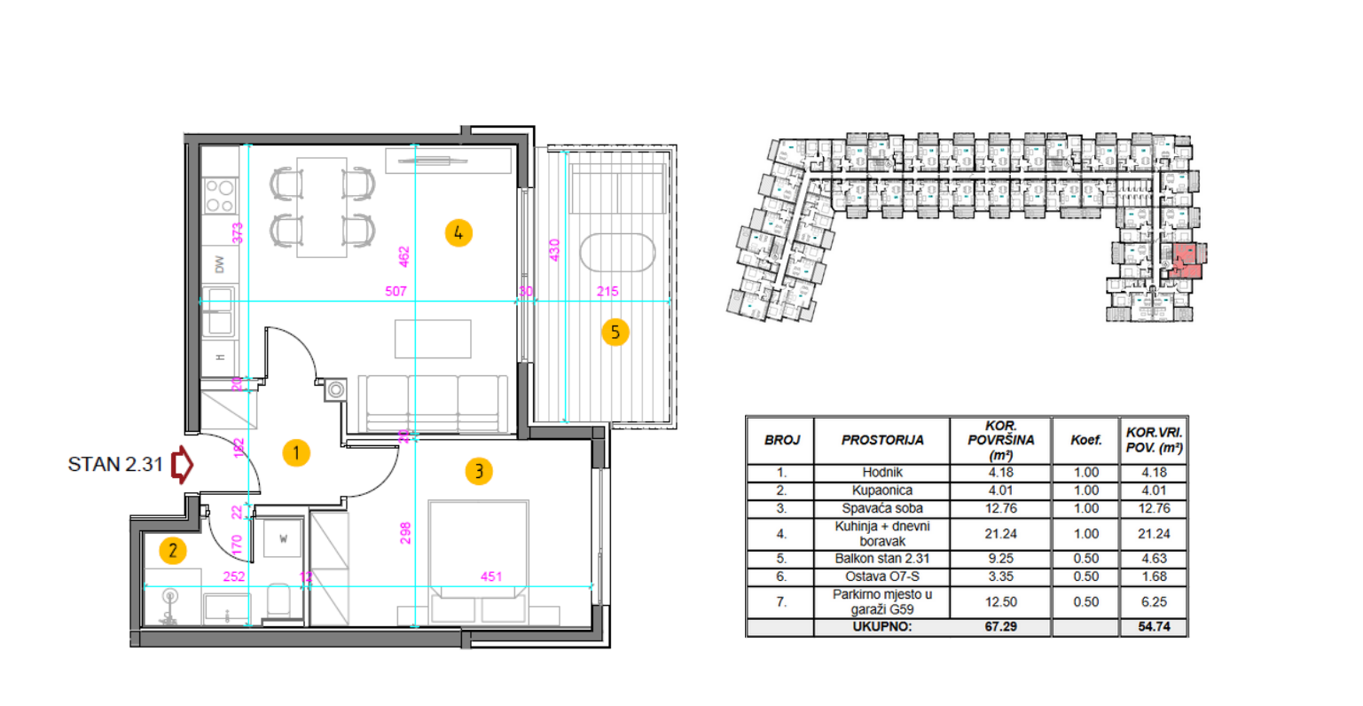 Jednosobni stan površine 54,74 m² nalazi se na drugom katu luksuzne stambene zgrade Centurion Residences u Umagu.