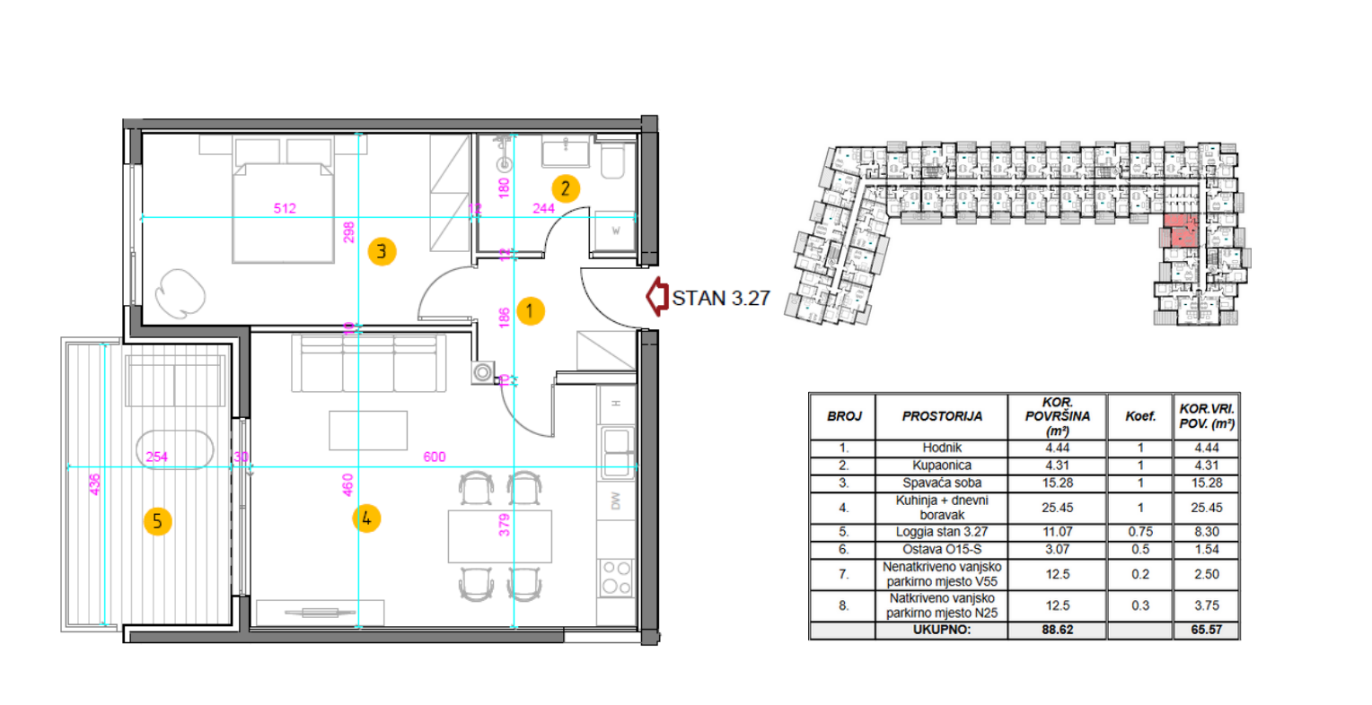 Stanu pripadaju dva parkirna mjesta i ostava.