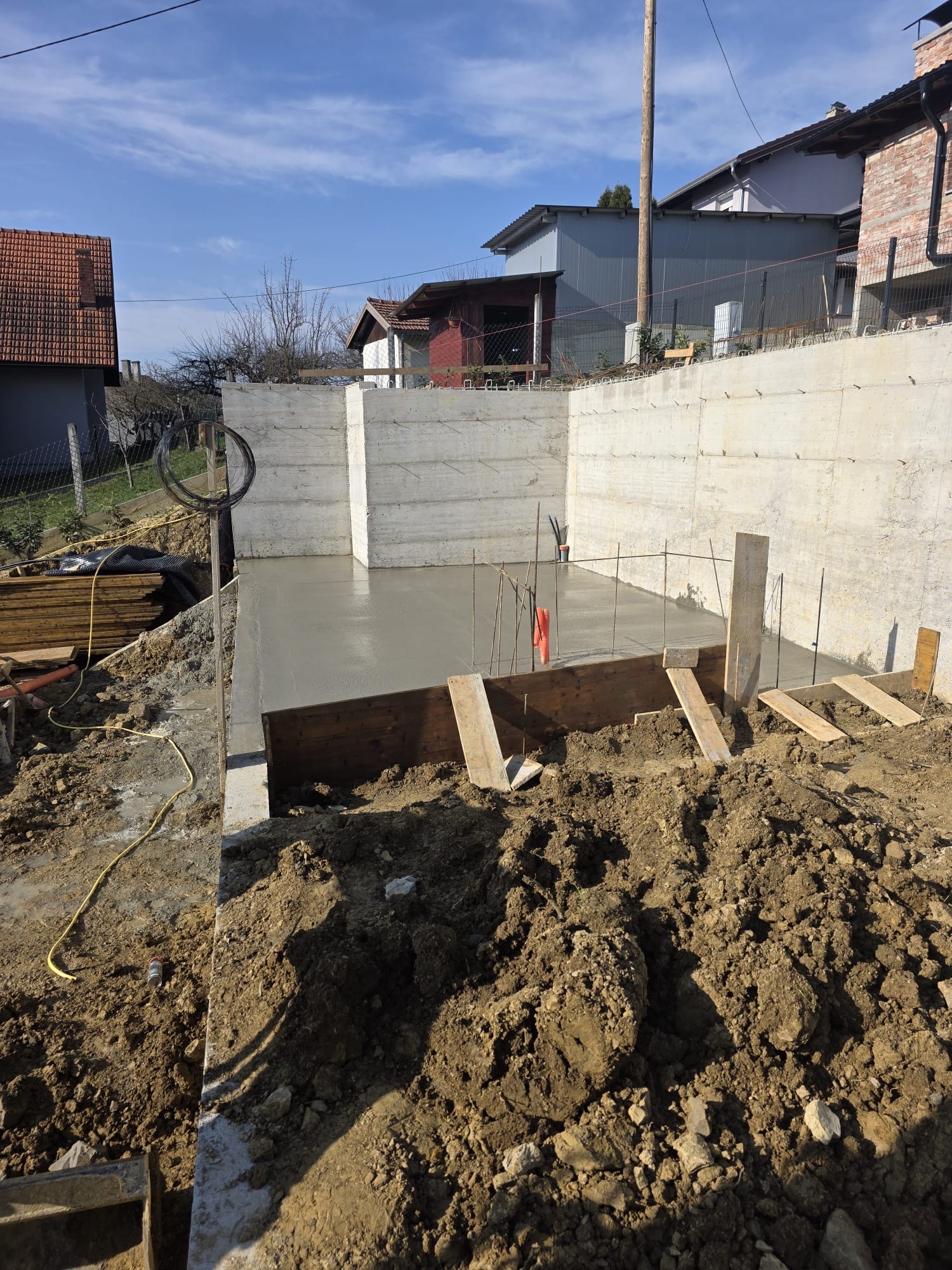 Kuća je smještena na kosini orijentiranoj prema jugoistoku te obuhvaća 108 m² stambene površine, uz dodatnu pomoćnu građevinu, na zemljištu ukupne površine 572 m². Uz nekretninu dolaze pravomoćna građevinska dozvola i pripadajuća arhitektonska dokumentacija, što budućem vlasniku pruža kvalitetnu osnovu za nastavak radova i planiranje dovršetka projekta.