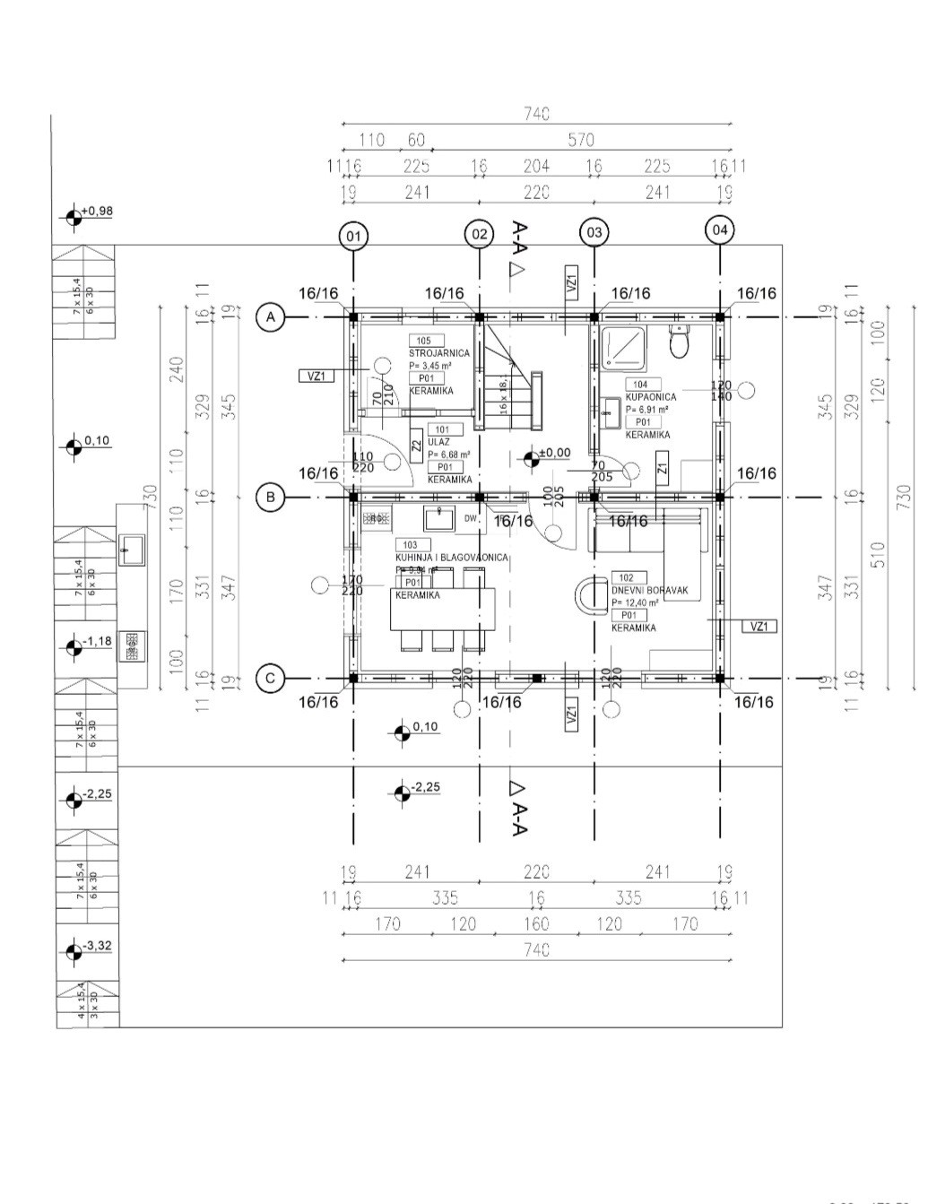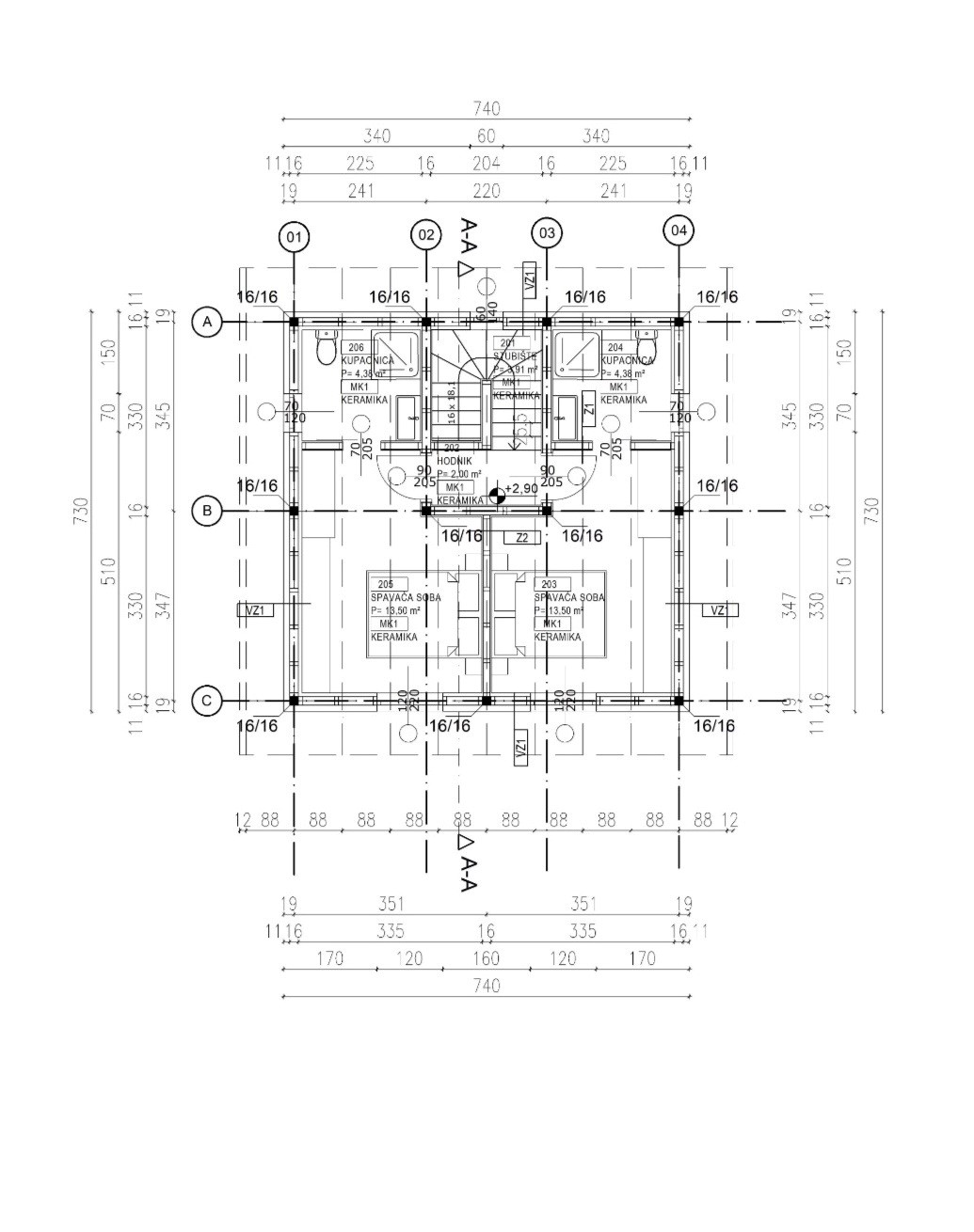 Prostor je organiziran na dvije etaže. U prizemlju su predviđeni ulazni prostor, prostrani dnevni boravak povezan s kuhinjom i blagovaonicom po open space konceptu, kupaona te strojarnica. Na katu se nalaze dvije spavaće sobe, svaka s vlastitom kupaonom, što prostoru daje dodatnu funkcionalnost, komfor i privatnost.